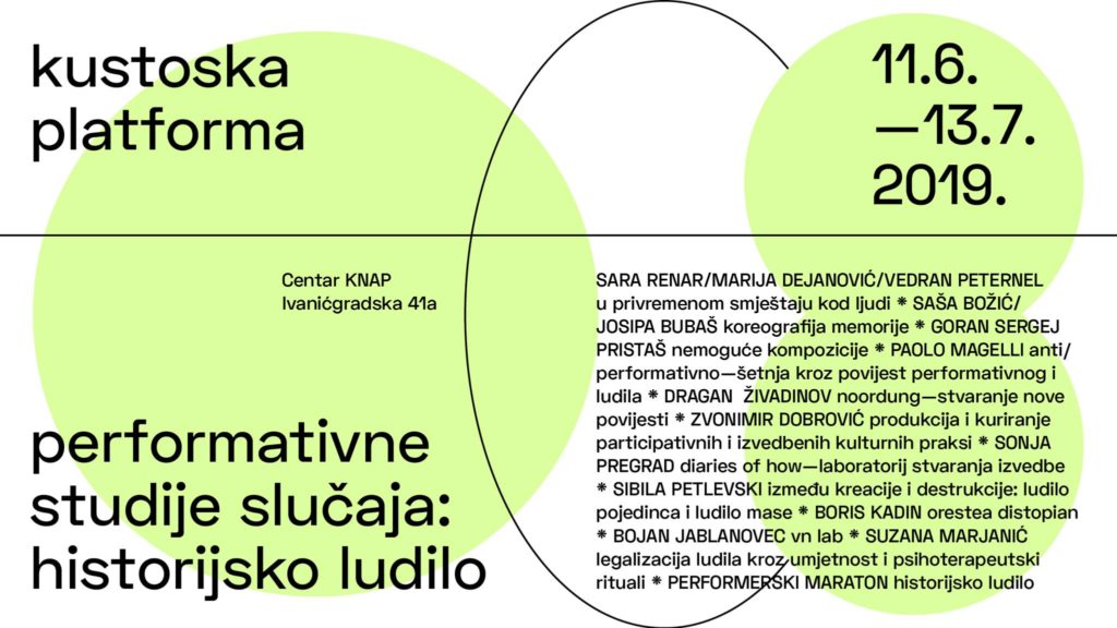 Kustoska platforma je program koji djeluje jedanaest godina kroz organizaciju edukacija iz kuriranja i kustoskih praksi, a od prošle godine program je proširen u područje izvedbenog—studijima iz performativnih formi te razvoja kustoskih praksi unutar te grane izvedbenih umjetnosti.